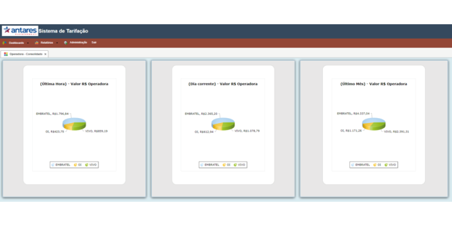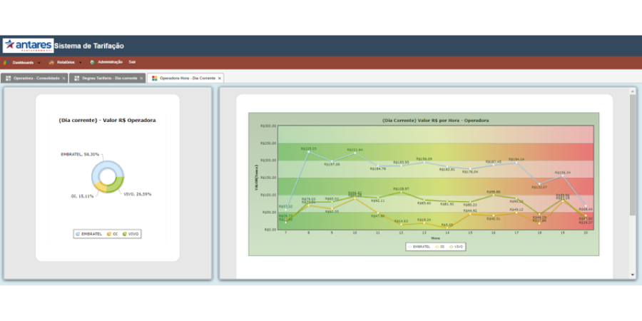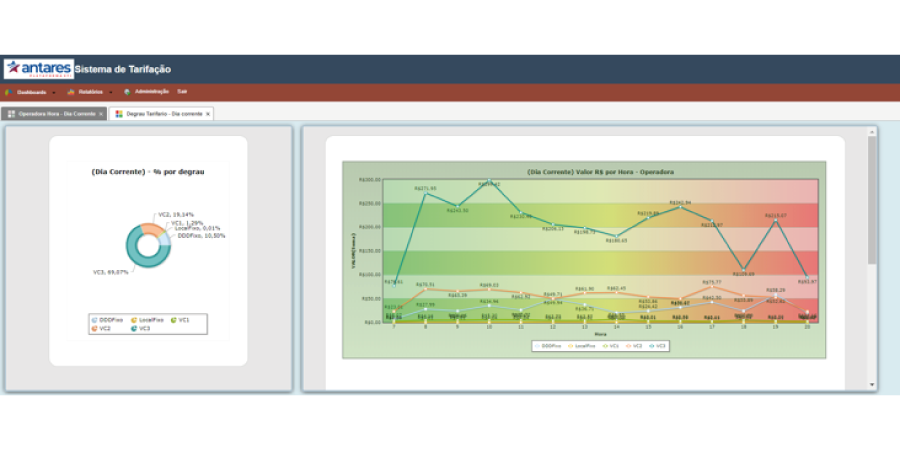 Com informações precisas, o Tarifador Braztele apresenta todos os dados atráves de gráficos.